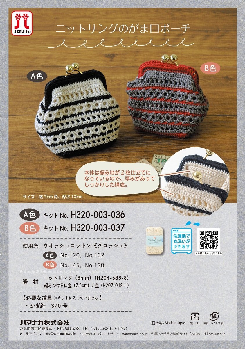 - ハマナカ ニットリングのがま口ポーチ 手作りキット 白黒