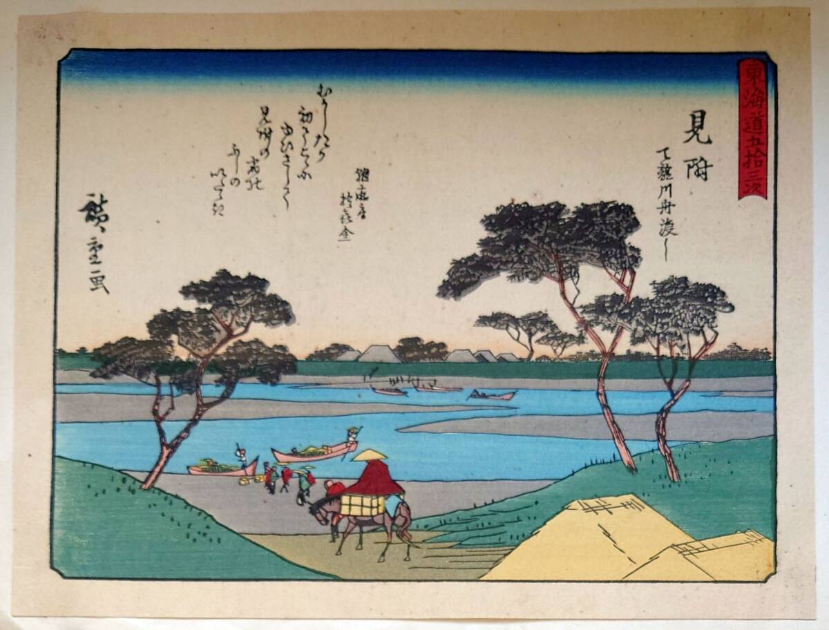 - f24040429〇彩色木版画 佐野喜版 狂歌入東海道五十三次 見付宿 広重 複刻昭和年代〇和本古書古文書