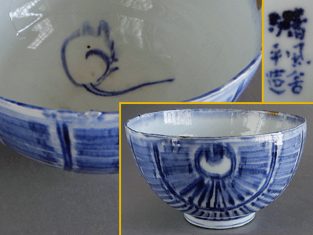 - 清風舎 与平 染付 俵にねずみ 菓子鉢 鉢