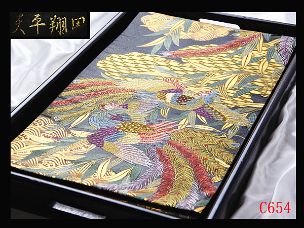 > C654厳選西陣 手織 振袖可 躍動感溢れる美意匠 天平翔鳳 六通高級正絹純金糸美術袋帯 ◇検◇簪着物名古屋帯和装小物帯締め