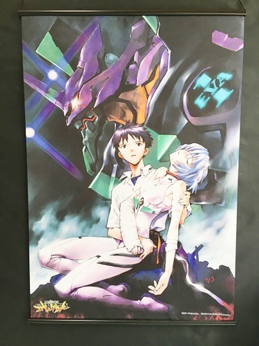 > ★【最後の1品!!!】美品!「エヴァンゲリオン」「初号機&シンジ&レイ(貞本義行) B2タペストリー」/ 綾波レイ アスカ マリ 手に入りにくい