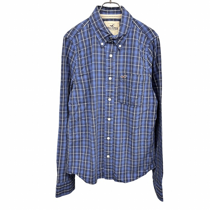 > ホリスター HOLLISTER シャツ チェック ボタンダウン 長袖 鳥 カモメの刺繍 胸ポケット ロングスリーブ 綿100% M 青 メンズ(レディース?)