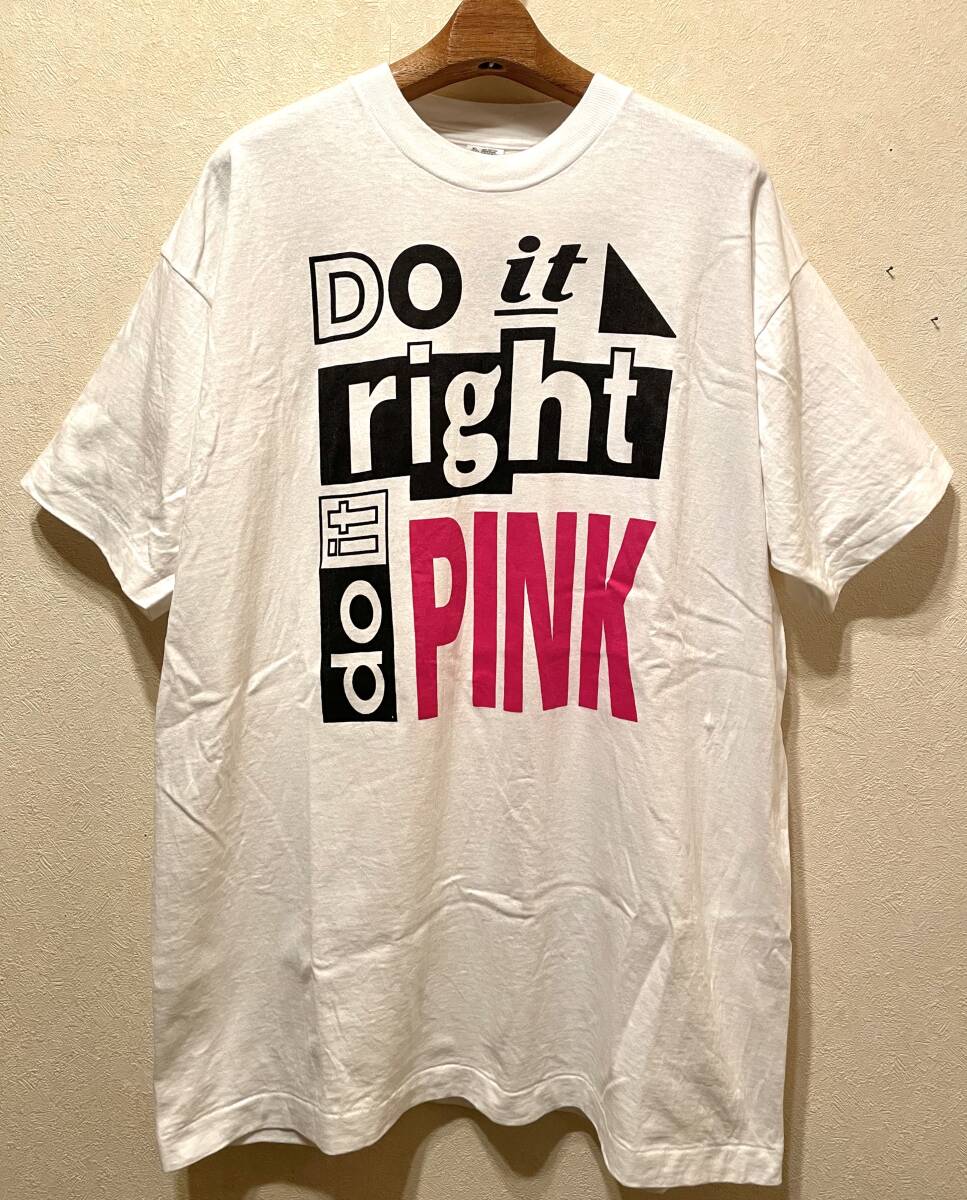 > 美品グッドプリント90sビンテージFRUIT OF THE LOOMメッセージTシャツXL白ピンクUSA製コットン丸胴フルーツボディ袖裾シングル90年代デッド
