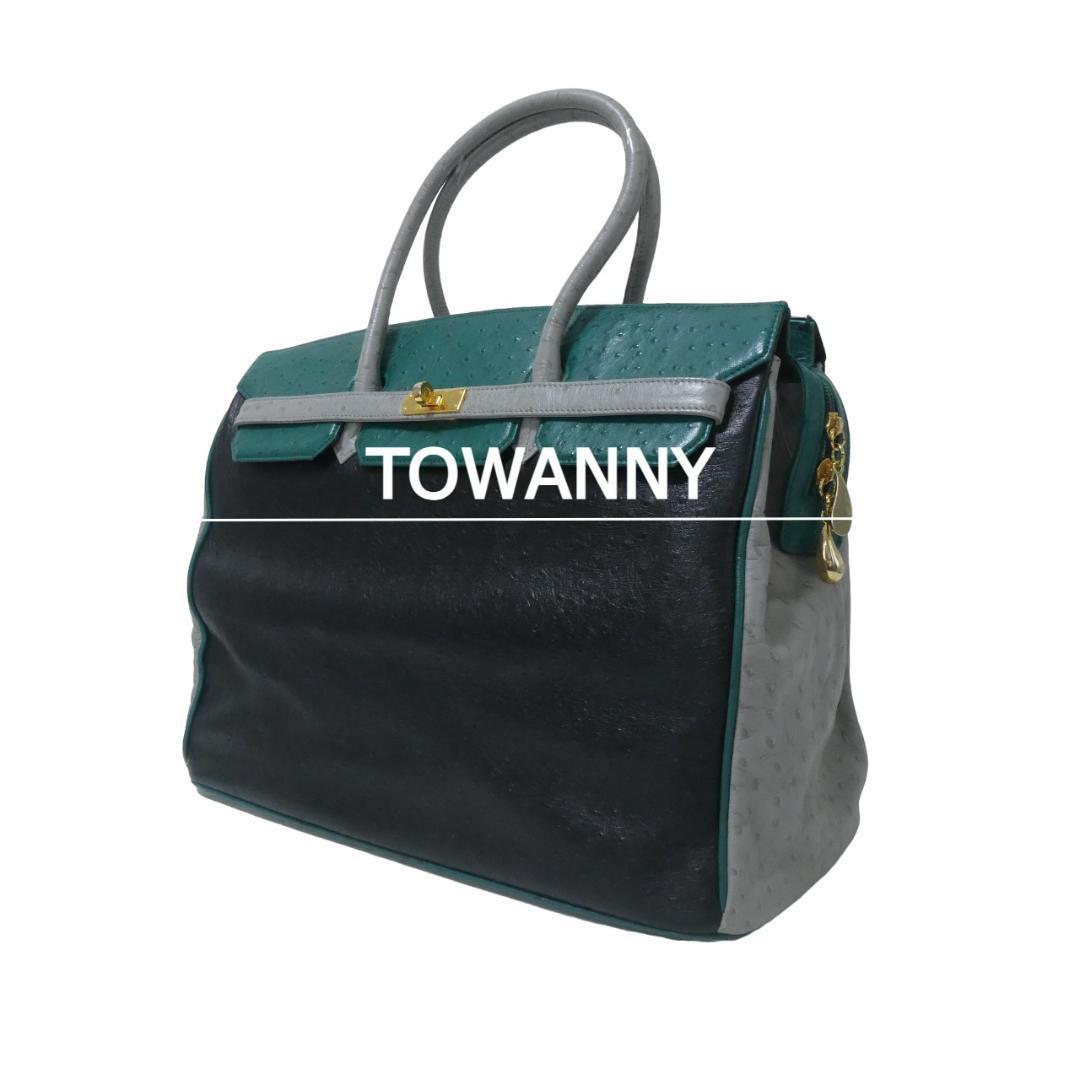 - TOWANNY トワニー オーストリッチ レザー 底鋲 大判 ハンドバッグ マルチカラー