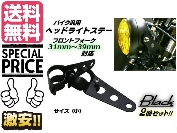 > 単車 バイク用 ヘッドライトステー2個セット 黒色 ブラック フロントフォーク 31mm~39mm対応 (小) 送料無料/6
