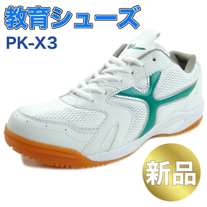 > 24.0cm 教育シューズ PK-X3 グリーン 緑 ホワイト 白 スクールシューズ 靴 学校 上履き 体育館履き 上靴 校内 幅広 中学 高校 屋内 運動靴