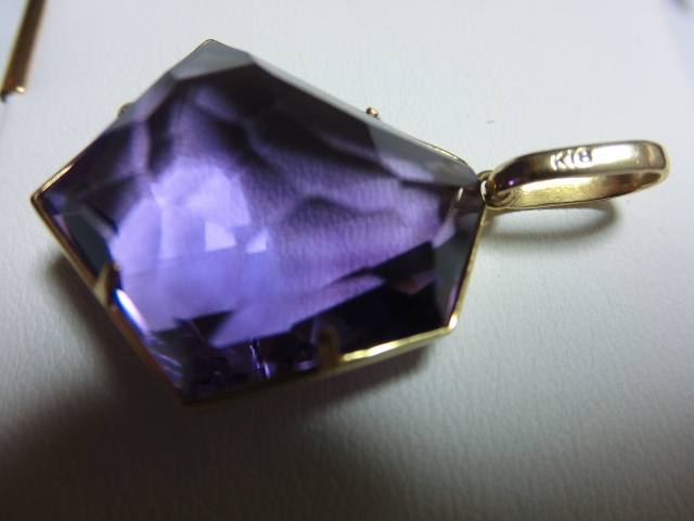 - ■美品:留め具K18大きなアメジスト.ネックレストップ Tn372