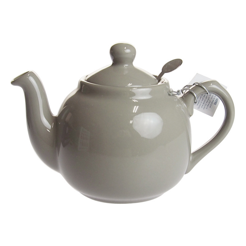 - 紅茶の本場イギリスの家庭用 ティーポット 2杯分600ml グレイ せっ器 ころんとした丸いフォルムが可愛らしい