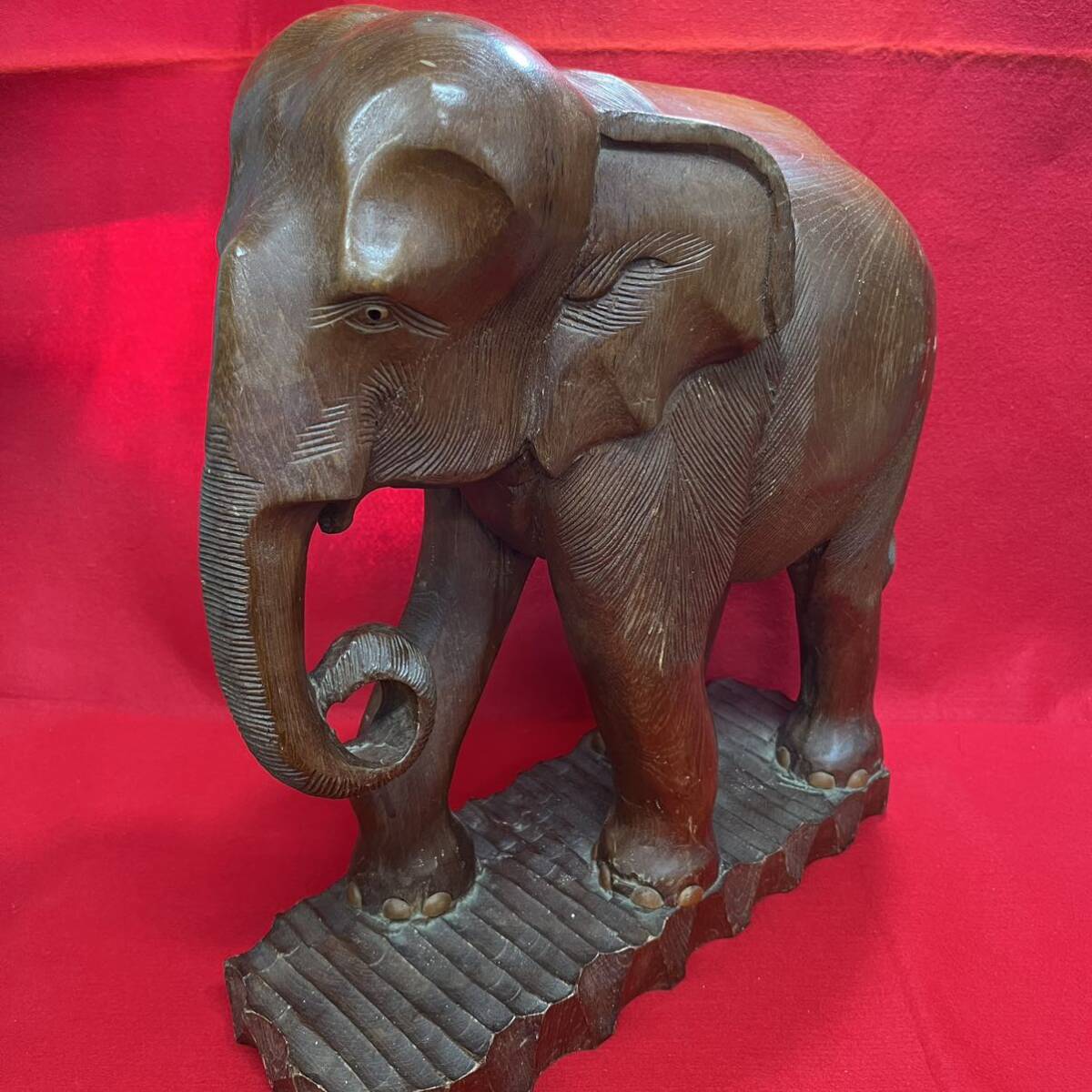 > ヴィンテージ 木彫り 象 高さ45cm タイ製 インド 縁起物 エレファント 置物 インテリア (08116並