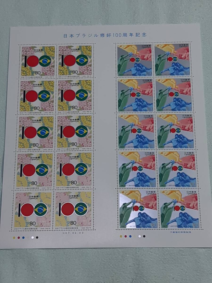 日本ブラジル修好100周年記念 H7 切手シート1枚