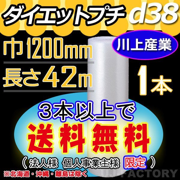 - 【3本以上で送料無料/法人様・個人事業主様】川上産業/プチプチ(d38) 1200mm×42m ×1本★ エアーパッキン・ロール/シート・梱包材