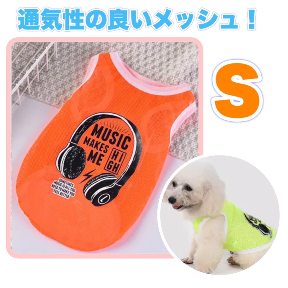 - 犬服 夏 タンクトップ メッシュ Sサイズ 可愛い ヘッドホン シャツ 小型犬犬服 タンクトップ オレンジ