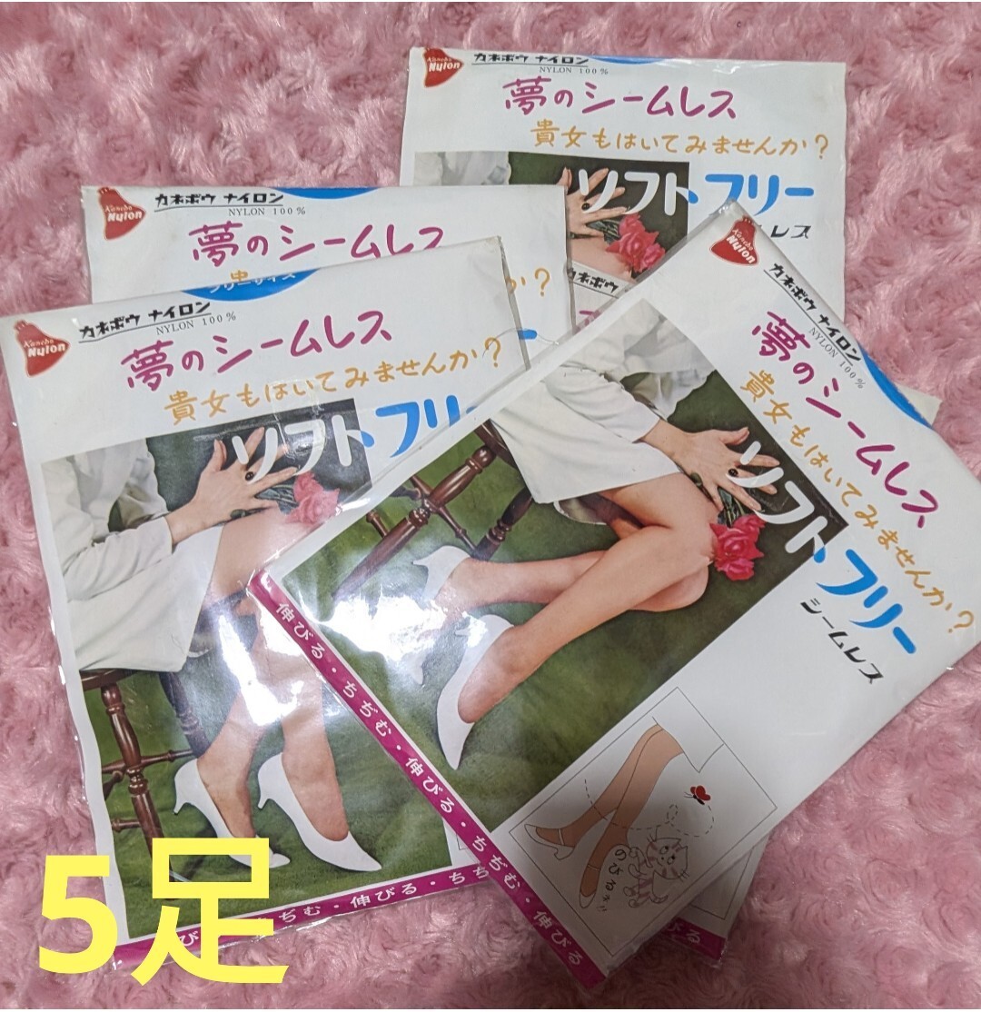 - 未使用 ストッキング シームレス ソフト フリー カネボウ ナイロン100% 20デニール 5足 昭和