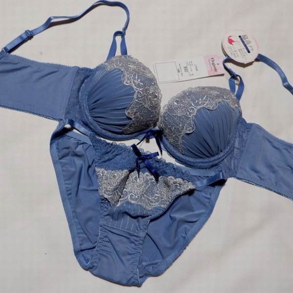 > Last Elegante B80L 脇高着やせ L字ワイヤー下厚盛モールドブラ&ショーツ ブルー