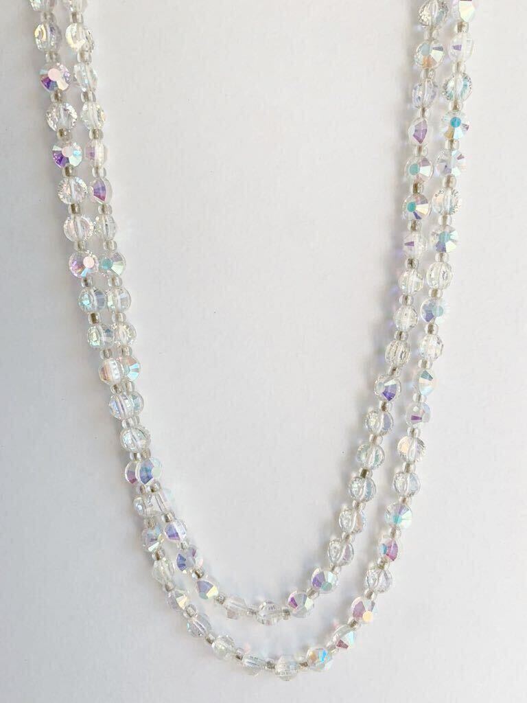 - 【USED】希少 ヴィンテージ クリスタルオーロラガラス 2連ネックレス ディスクタイプビーズ ラウンド 円盤型ビーズ クラスプに小さなお花