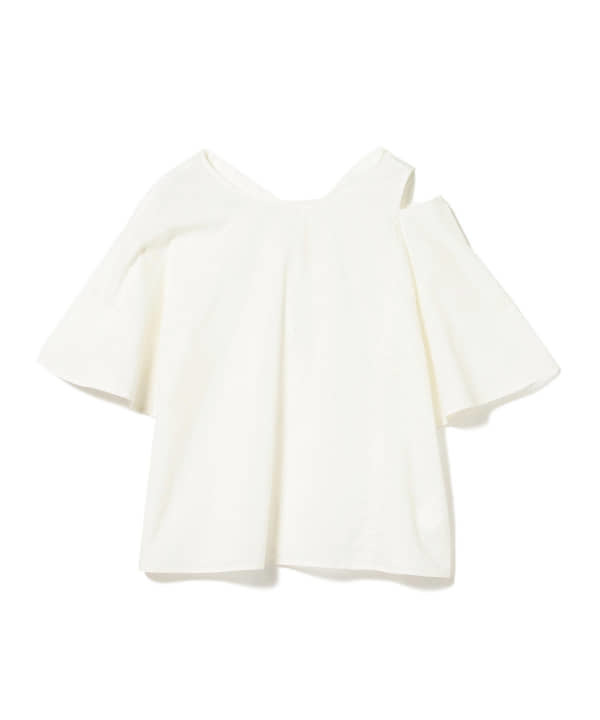 - 新品未使用タグ付き BEAMS HEARTビームスハート スリットショルダーブラウス カットソー コットン100 リボンで後ろ姿も抜かりなく可愛い1枚