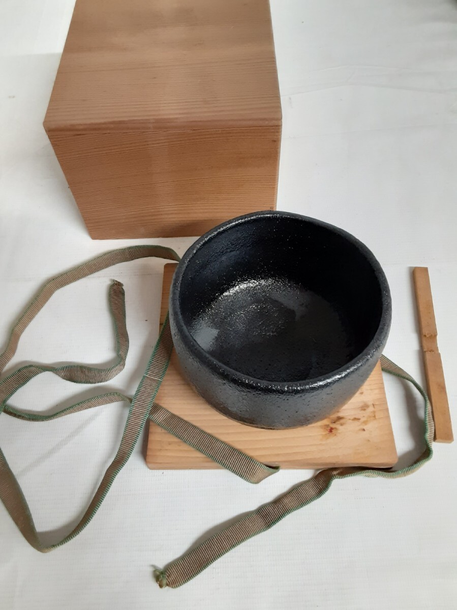 - ☆作家物☆良楽作☆黒楽茶碗☆共箱有☆経年劣化による汚れあり☆高さ8.5cm 幅 11cm 奥ゆき 11cm☆ 陶器☆ 茶碗☆