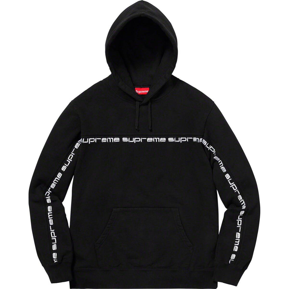 - 希少★新品本物【黒★M】Text Stripe Hooded Sweatshirt 刺繍ロゴ テキストストライプ 正規店購入 シュプリーム 限定 入手困難 Supreme18AW
