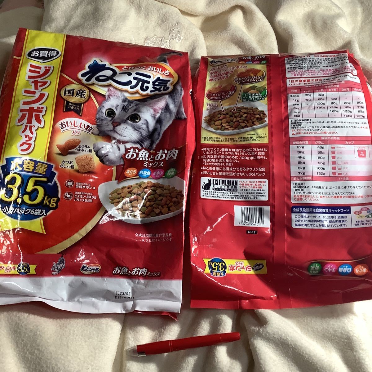 - 猫餌 猫元気 赤 魚肉MIX 3.5kg 2袋 仕入除複数500円超10%オマケ 賞味2026/12 大袋1〜4と小袋と青と赤青setや猫砂も有 100