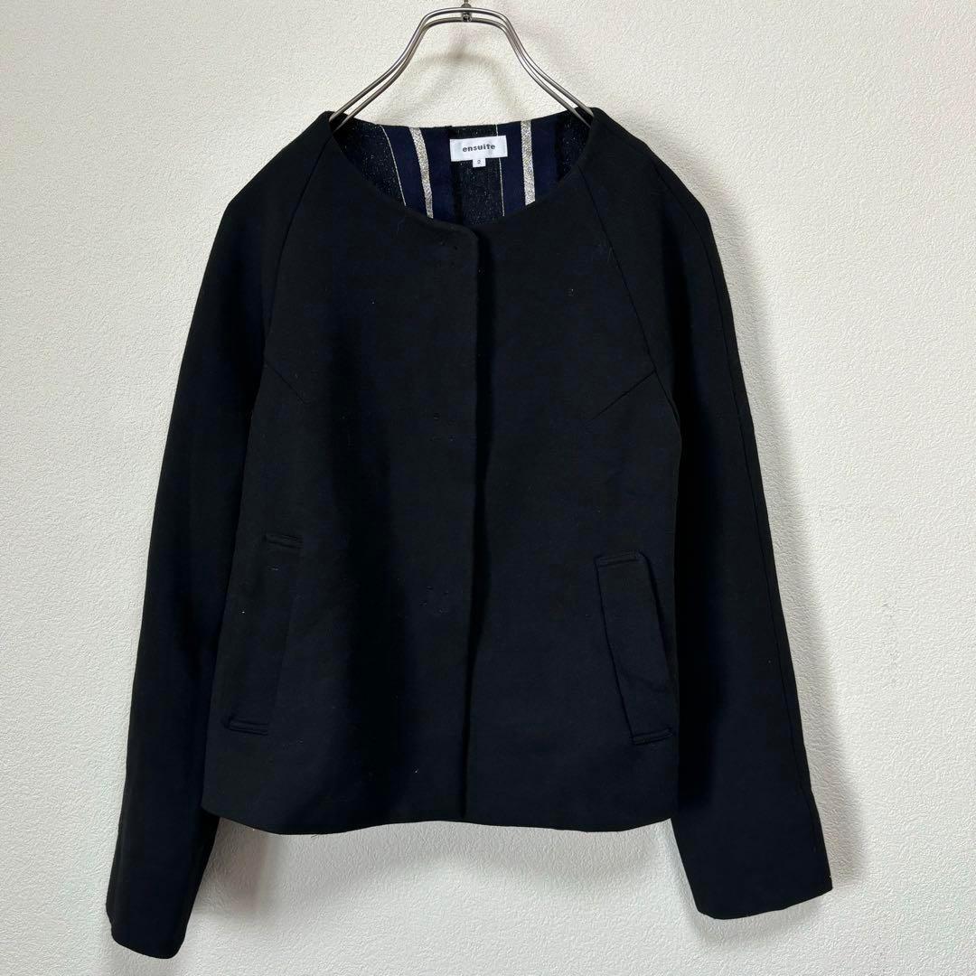- 美品【(株)レナウンensuite 】【ノーカラージャケット】【2】【M】古着 アウター スーツ