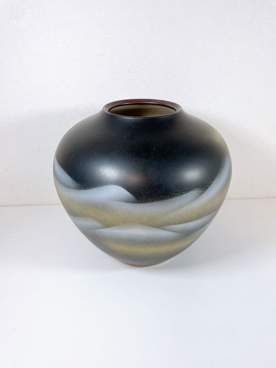 - 1080 九谷焼 阿古作 花瓶 銀静山 花入 陶器