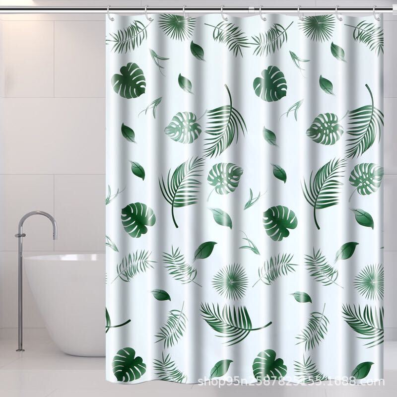 - シャワーカーテン 浴室カーテン 間仕切り 葉っぱ トロピカル グリーン 目隠し 撥水 防カビ 幅150*丈180cm