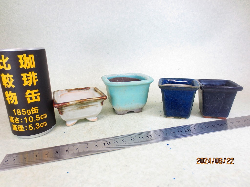 > [緑の市場] 小品盆栽鉢 銘無し 正方鉢 4点組*1点欠け有 (R254)定形外郵便送料無料/ゆうパック発送有料*選択可※無料発送はポスト投函