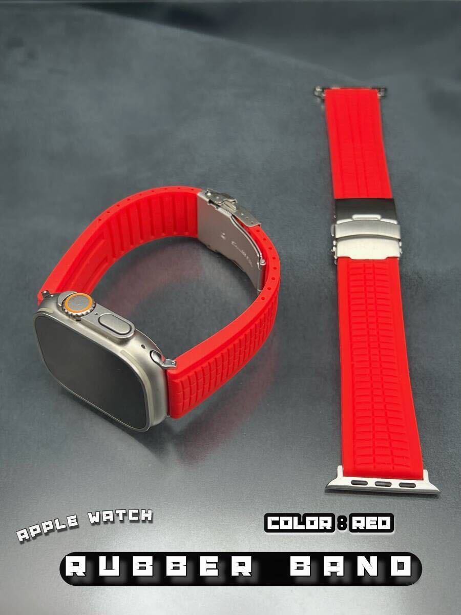 - レッド アップルウォッチ ラバー バンド ベルト ホールバックル シリーズ10 ウルトラ SE 49mm 46mm 45mm 44mm 42mm ワイド幅