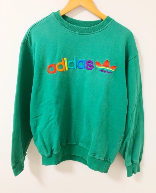 - adidas(アディダス)80's~90's 銀タグ 中国製 ロゴ レインボー刺繍 クルーネック スウェット トレーナー【E4010-007】