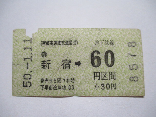 - ★☆送料無料 【切符・軟券】 新宿 帝都高速度交通営団☆★
