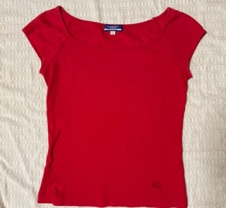 > 着用少★バーバリー★カットソー★サイズM★きれい赤★裾上マーク刺繍★ノースリーブシャツ★バーバリーブルーレーベル★BURBERRY