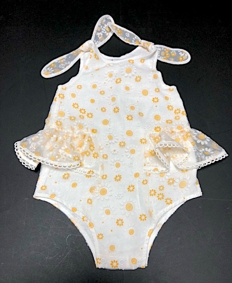 > 二点以上で送料無料! 2A48【未使用】Chloe and Amelie クロエアンドアメリ ロンパース プレイスーツ 花刺繍 キッズ ベービー 2才/90~95