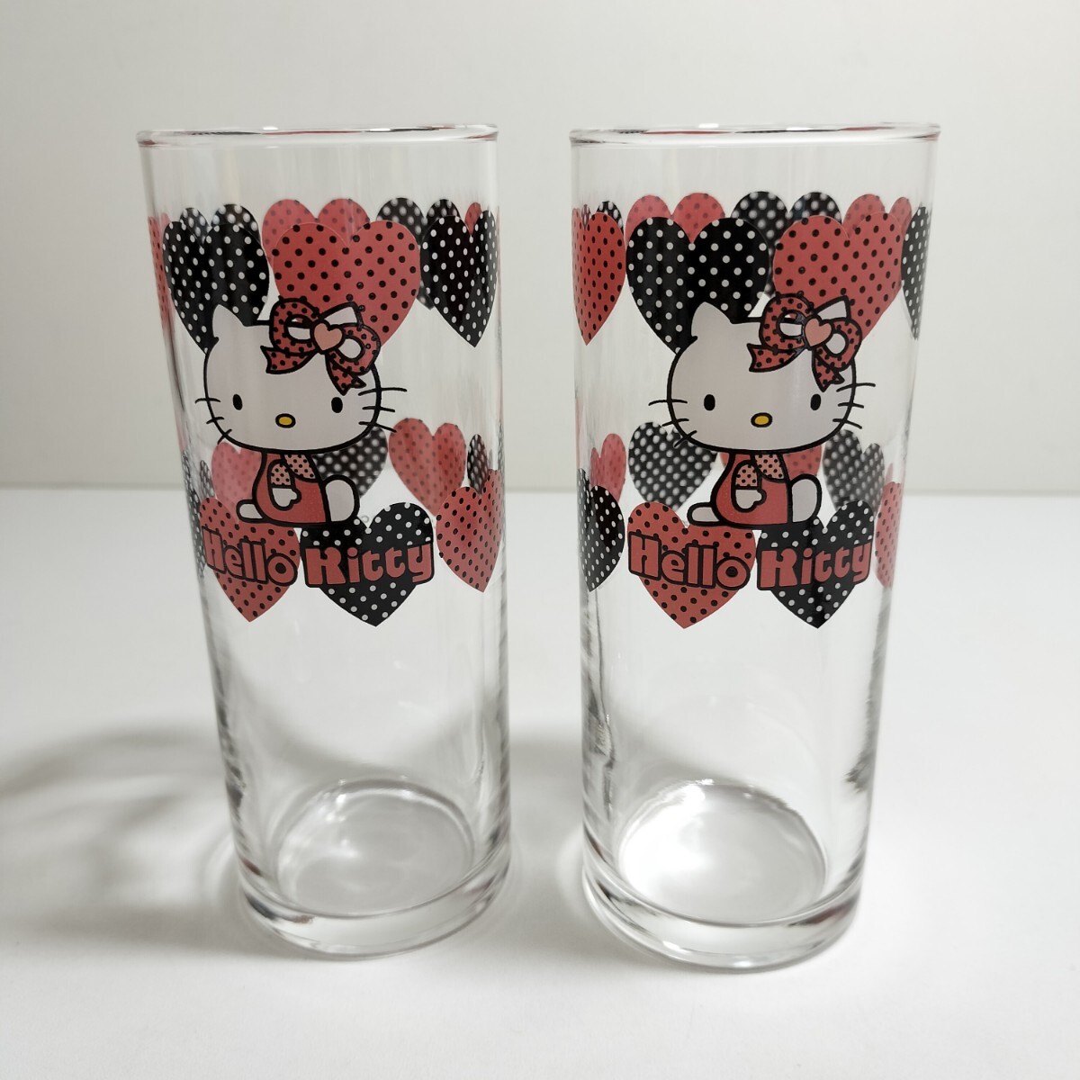 - 2005年 サンリオ ハローキティ ハート柄 スリムタンブラー 直径5.9cm×高さ14.8cm 2点セット 未使用品 [グラス コップ タンブラー]