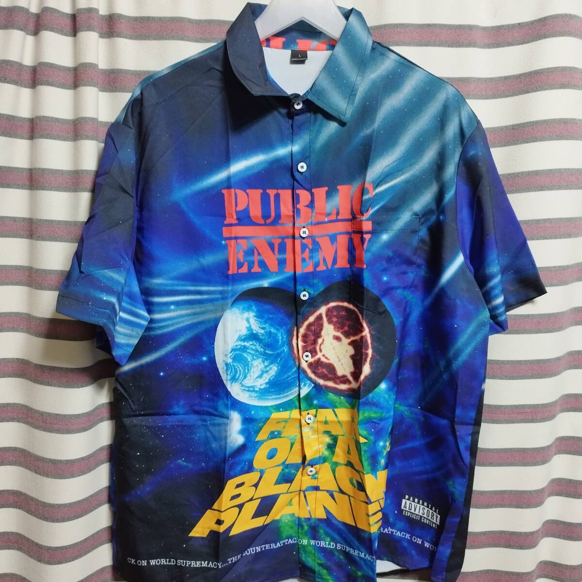 - 海外直輸入品★パブリックエナミー Public Enemy 名盤ジャケットプリント 半袖シャツ【Lサイズ】総柄デザイン バンドT アロハ 新品