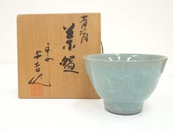 - ys7030195; 宗sou 京焼 川崎与吉造 青磁氷裂文茶碗(共箱)【道】