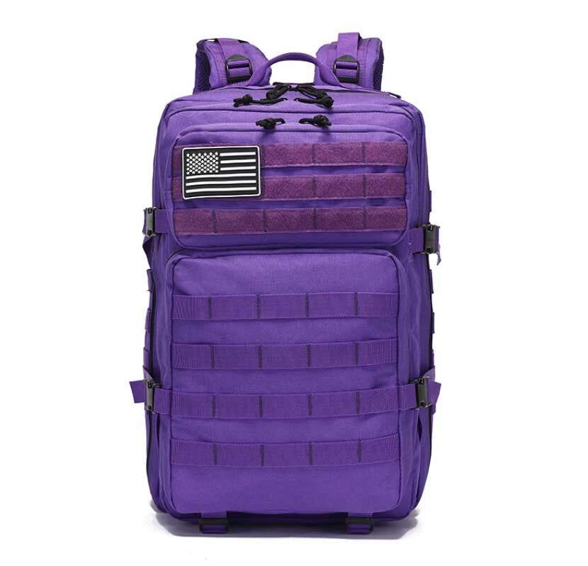 - 紫色 バックパック 45L アウトドア 大容量リュックサック 多機能 MOLLEシステム 宿泊 防災 旅行 丈夫 登山 通学 頑丈