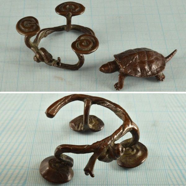 - C09379 銅製 カメ 亀 59g 霊芝にデンデン虫41g 2点セット :真作