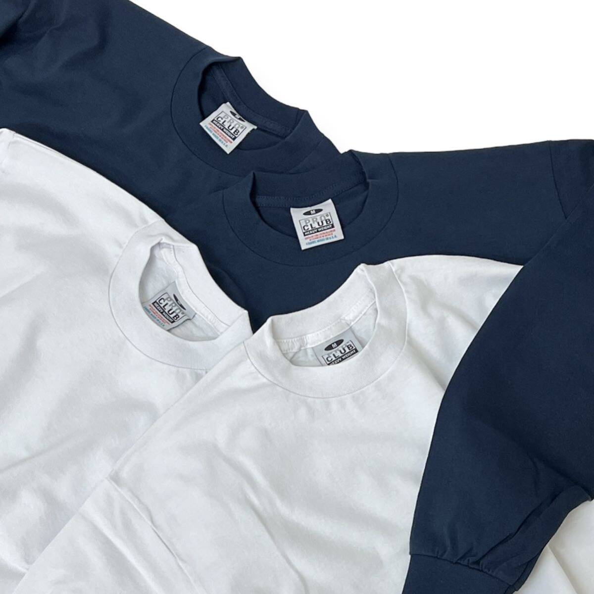 - 訳あり 4枚 PRO CLUB HEAVY WEIGHT 長袖 Tシャツ M プロクラブ ホワイト&ネイビー ロンT 無地 男女兼用 まとめ売り 未使用 #noca0474-FS