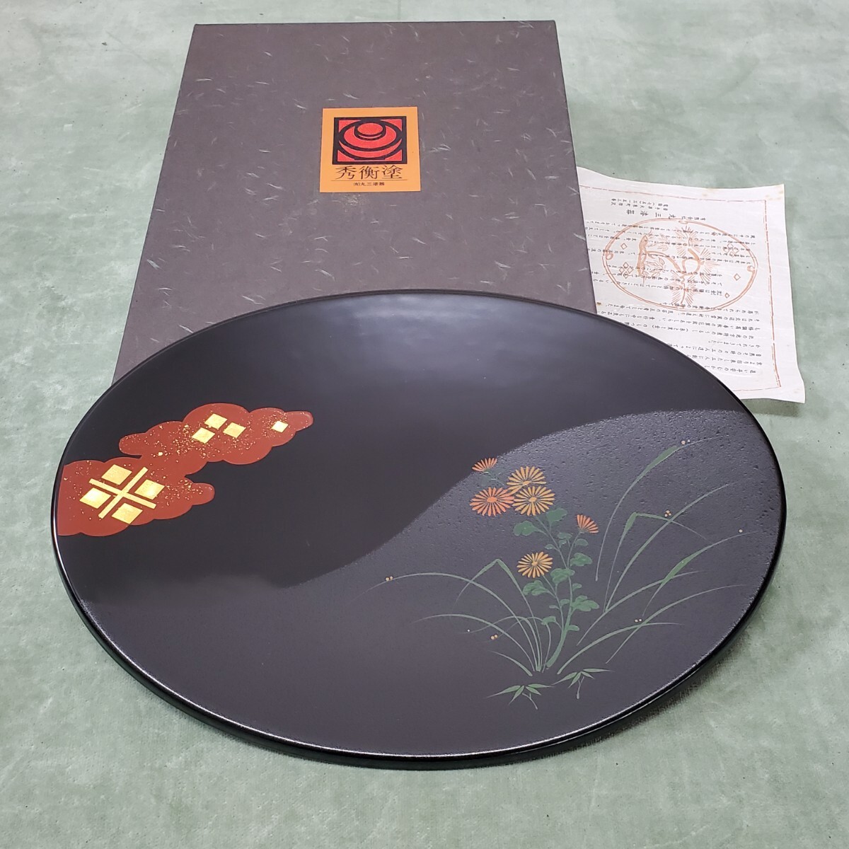 - 木製漆器 秀衡塗 楕円盆 (検索 丸盆 お盆 茶道具 懐石道具 藤原秀衡 骨董 アンティーク コレクター コレクション s7/1774