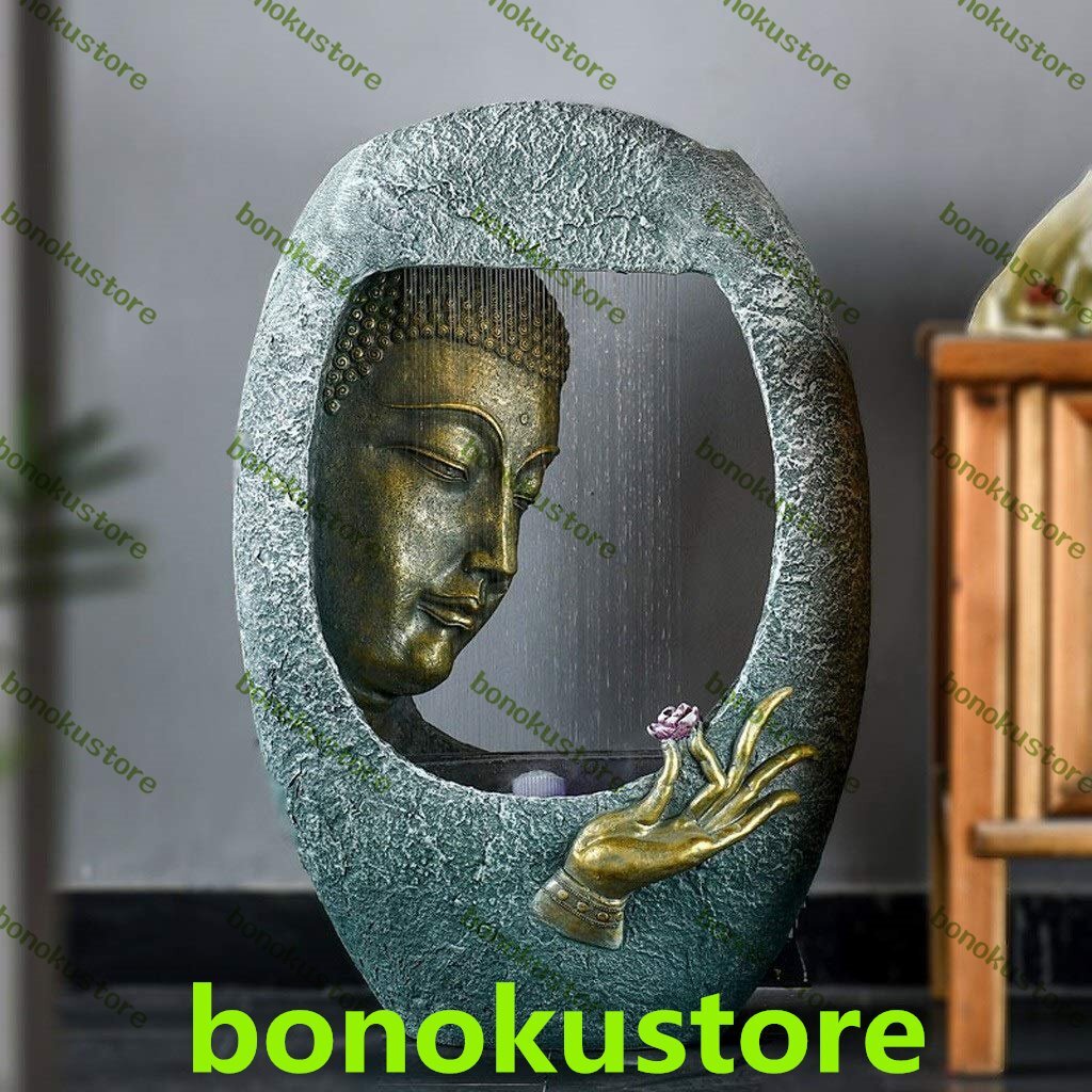 > 屋内リラクゼーションデスクトップ噴水滝 仏像噴水樹脂はウォーターデコレーションウォーターポンプとLED 噴水屋内加湿器禅を彫