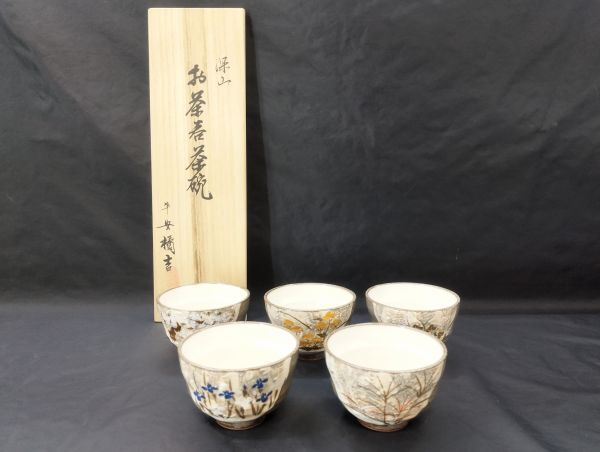 - サ/ 平安橘吉 / 深山 お茶呑茶碗 5客 共箱 絵変わり 湯呑 たち吉 /HY-0240