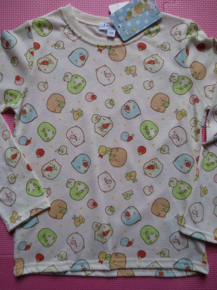 > 新品 120 すみっコぐらし 長袖Tシャツ 総柄 しろくま ねこ ぺんぎん? とかげ とんかつ えびふらいのしっぽ 女の子 秋物 110〜 送料無料