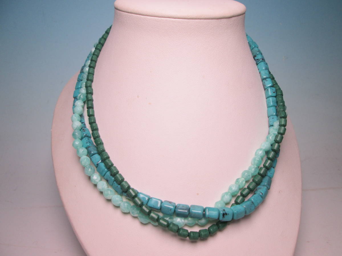 - ☆トルコ石風 スリーカラーの3連ネックレス 25,64g