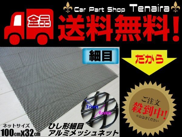 > アルミ製 細目 メッシュ ネット 3×6mm 塗装済み 100cm×32cm 黒 グリル エアロ 菱型 網 送料無料/3