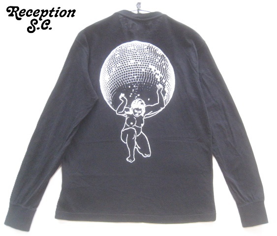 > 美品ポルトガル製!!レセプション Reception S.C.*PULP LSプリント 長袖Tシャツ XS 実寸S 黒 ブラック 定価1.5万