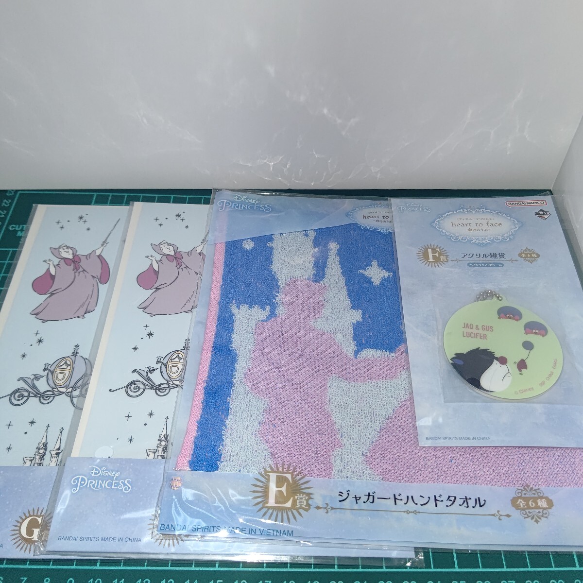 - シンデレラ 4点セット 一番くじ heart to face 向きあう心 E賞 ジャガードハンドタオル F賞 アクリル雑貨 G賞 ステッカー 2枚 Cinderella