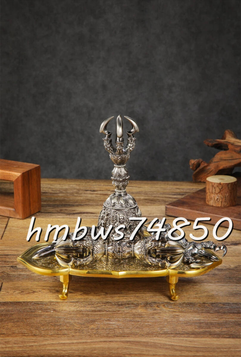 - 「密教法具 寺院仏具」五大明王 金剛鈴 金剛盤 五鈷杵 三鈷杵 独鈷杵 5点セット 寺院用仏具 仏教 工芸品 真鍮製