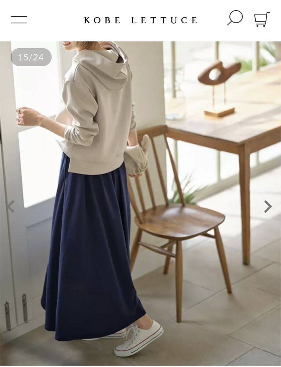 - 新品 KOBE LETTUCE 紺色 ロングスカート ウエストゴム S サイズの方にもお洒落なデザイン 人気商品 神戸レタス