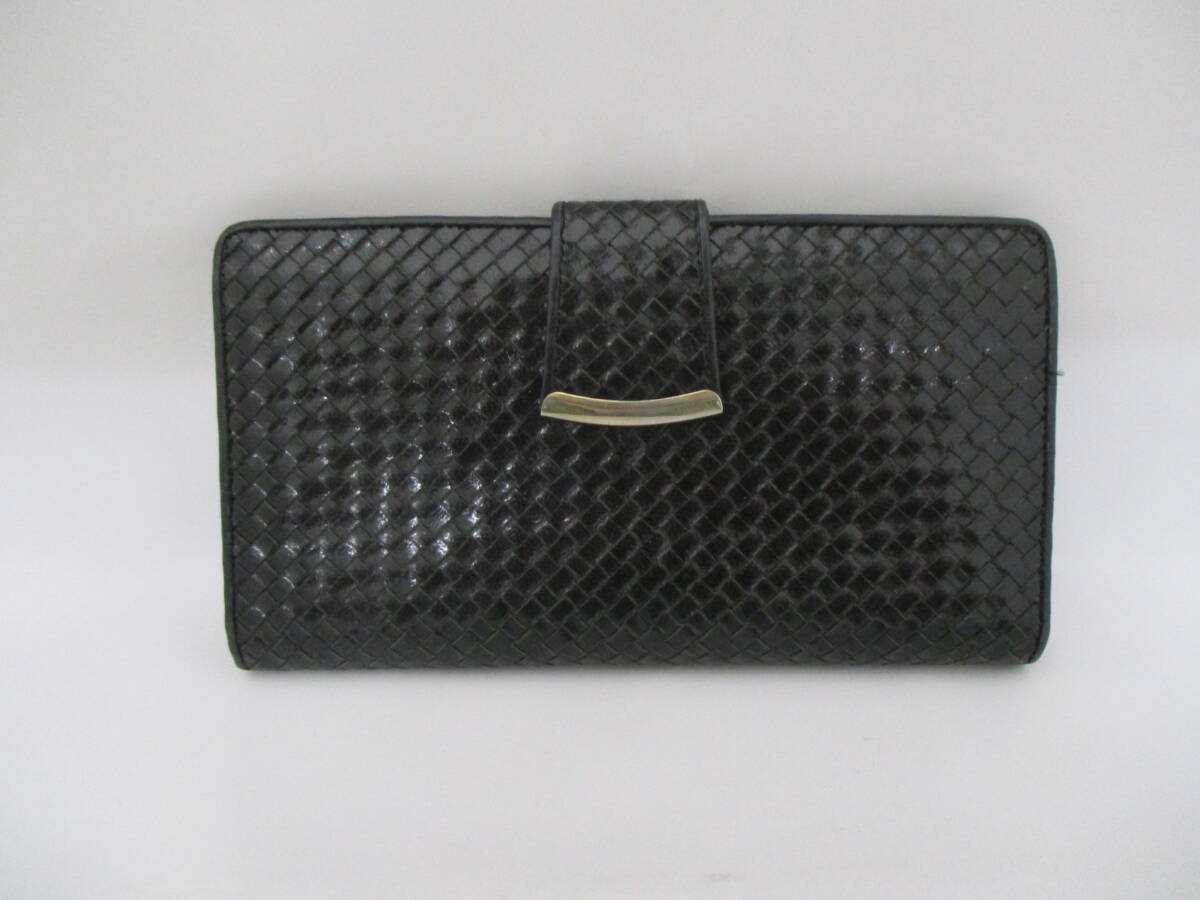 > PRINCE プリンス GENUINE COW SKIN 本革 レザー がま口 長財布 小銭入れ 黒 ブラック 2つ折 レトロ 編み【5255】