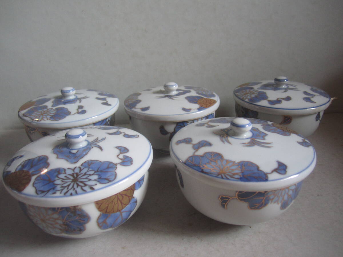 - 有田焼 蓋つき湯飲み 菊柄 5客 未使用